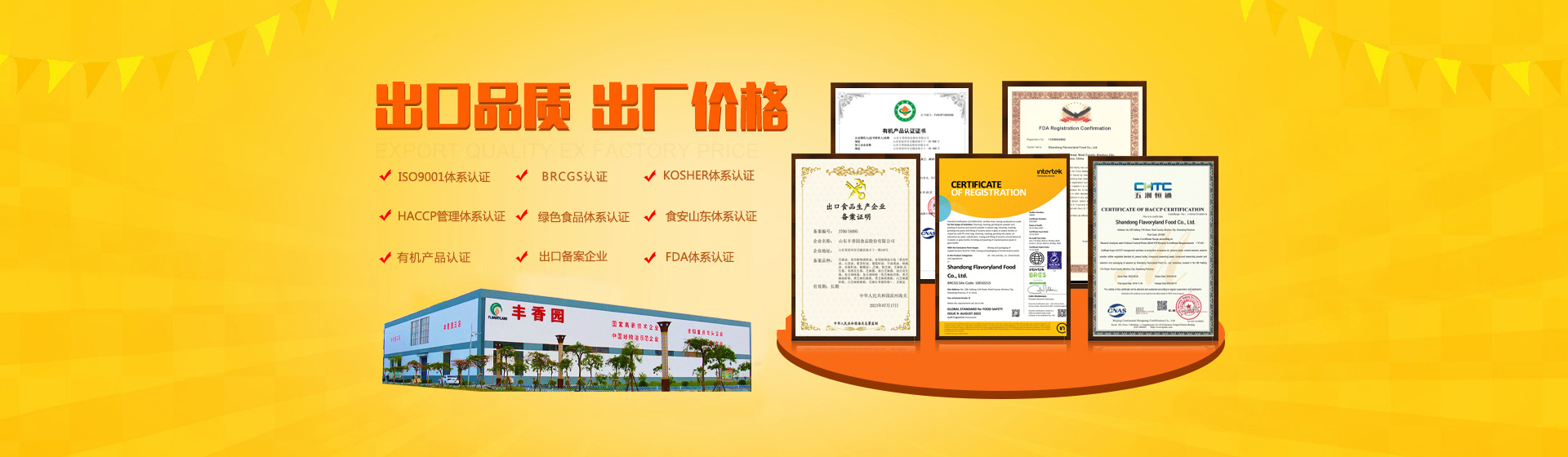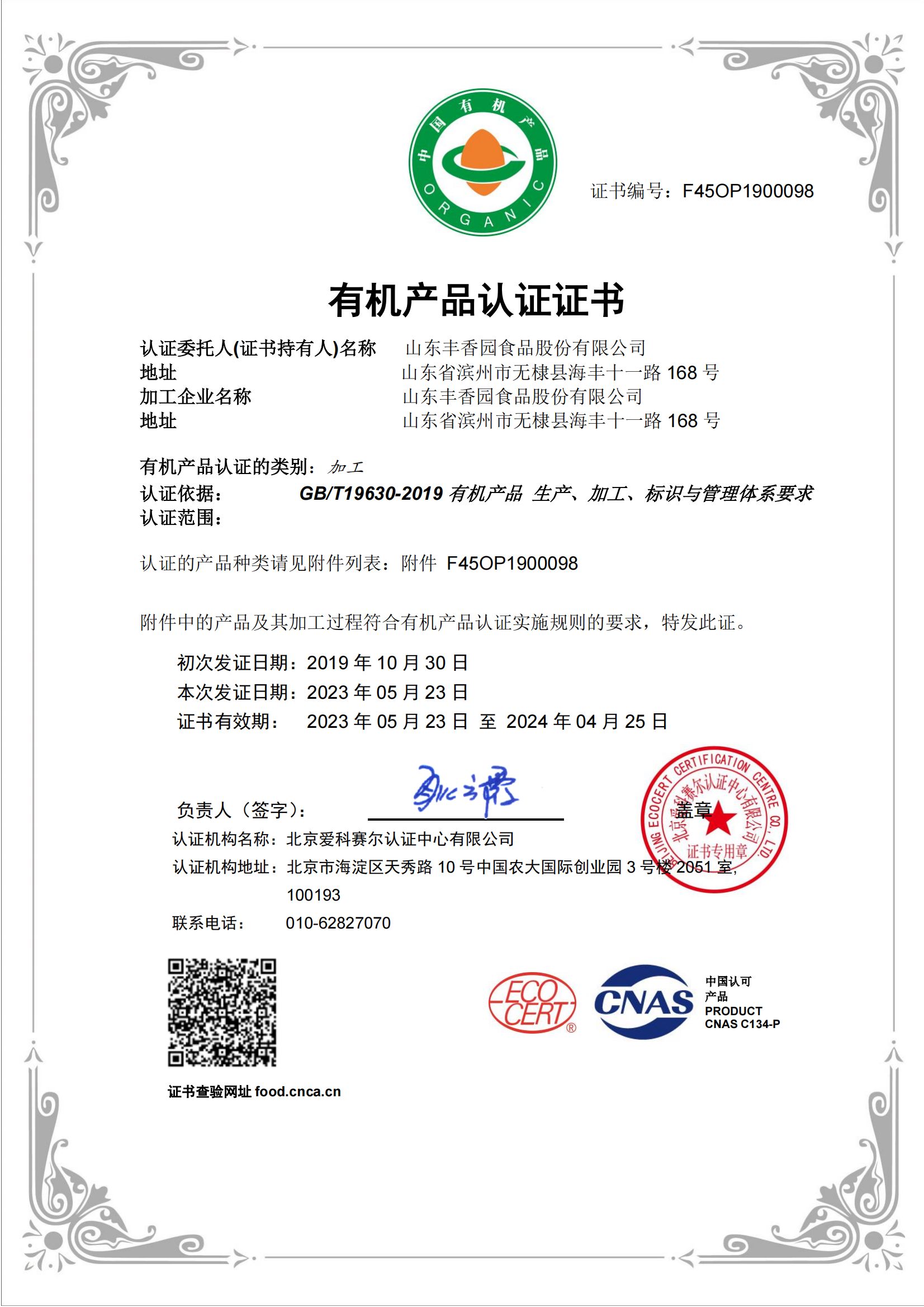 公司獲得HACCP國際質量體系認證、ISO9001:2015質量管理體系認證,產品獲得美國FDA認證、美國、歐盟有機食品認證、英國BRC體系認證、A級綠色食品認證、GB國標有機食品認證。